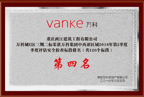 万科E区三期二标荣获万科集团中西部区域2017年3季度综合评估第一名